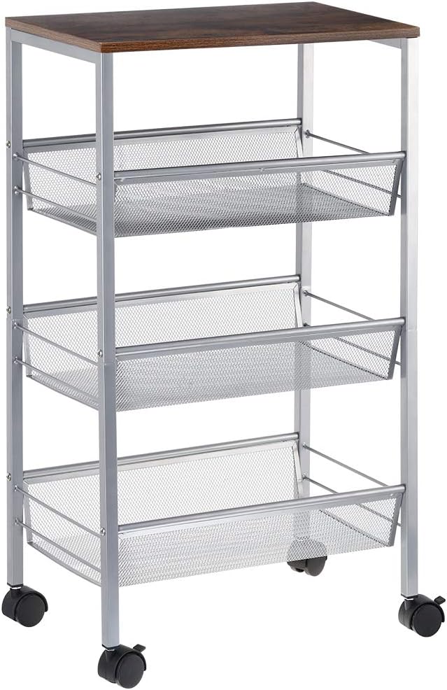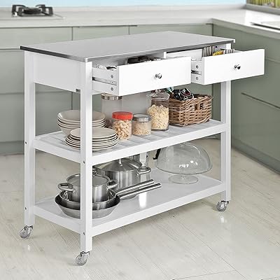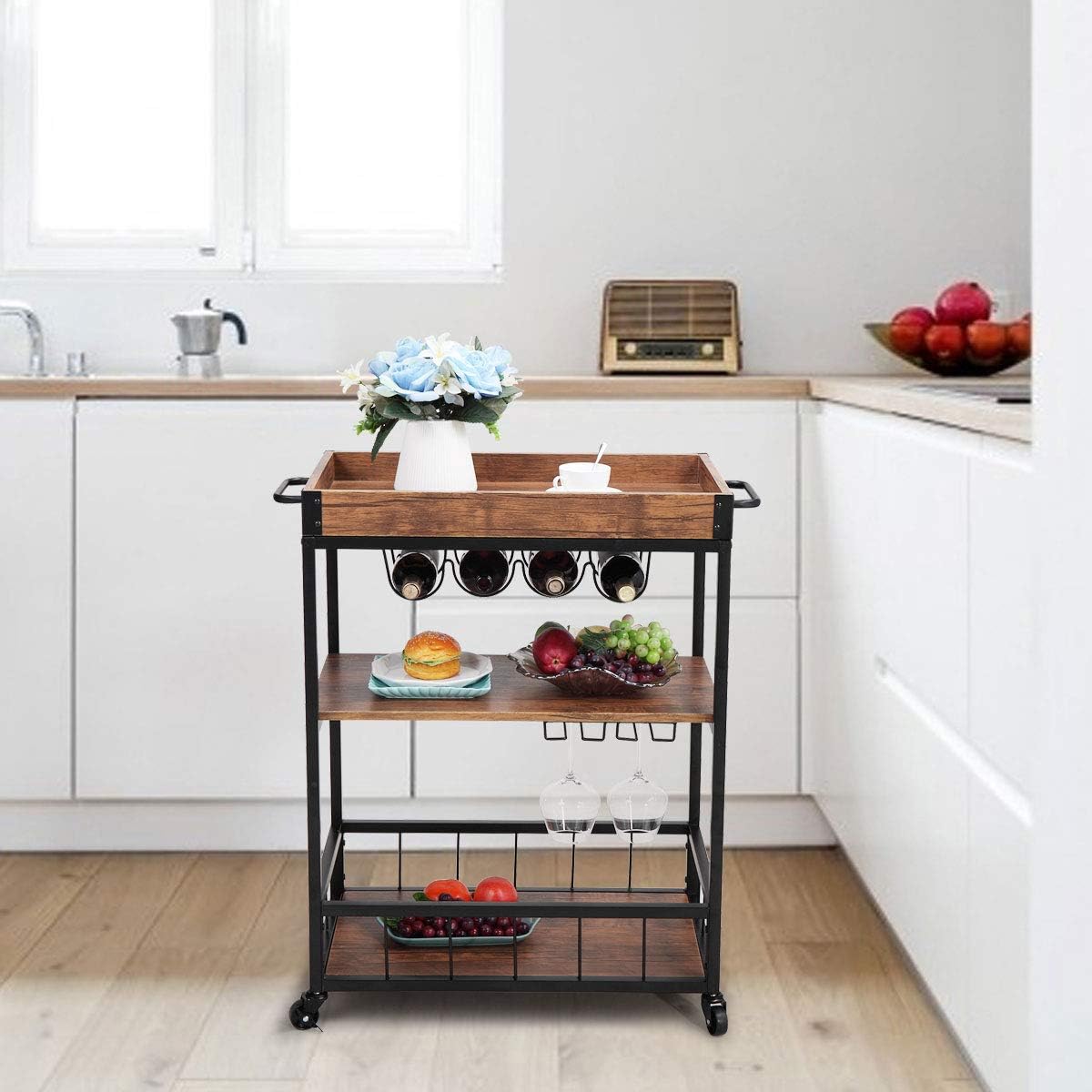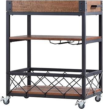 Total ratings 3, $187.92 new. An angled push handle, three tiers of shelving with guard rails, and rubber casters make. Emanating with its rustic appearance and durable construction, the kitchen cart can be easily moved thanks to its locking caster wheels. Only 1 available and it's in 1 person's cart. This kitchen cart will make a beautiful addition to your home.